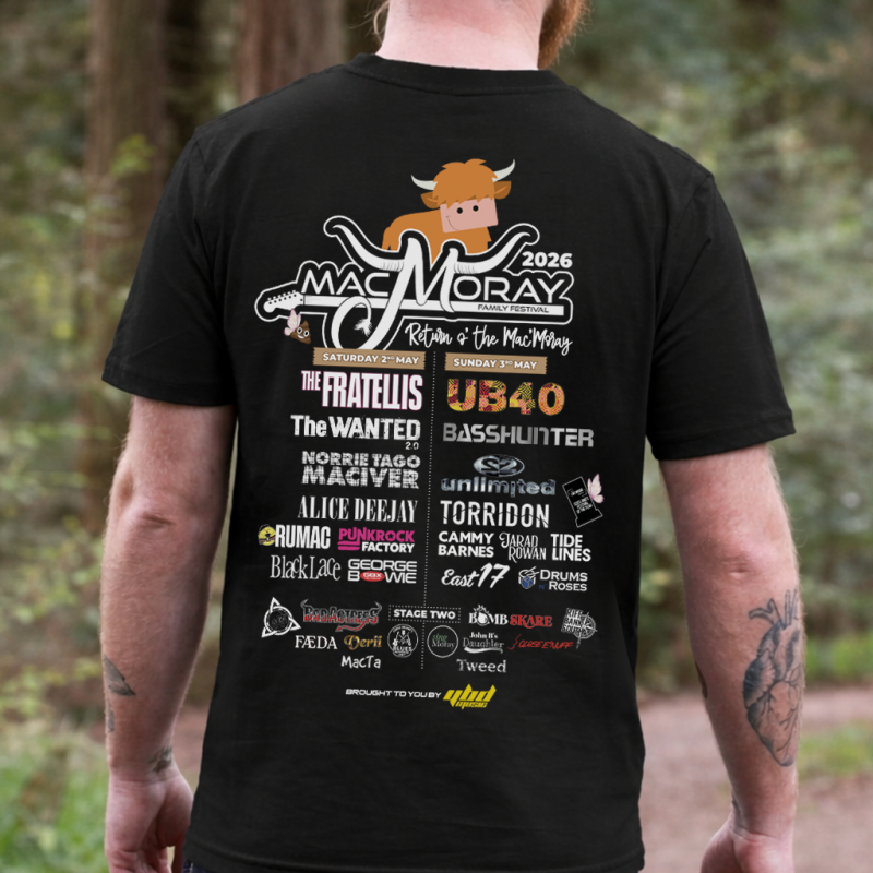 New for MacMoray Festival 2026, the official lineup t-shirts you have been waiting for!